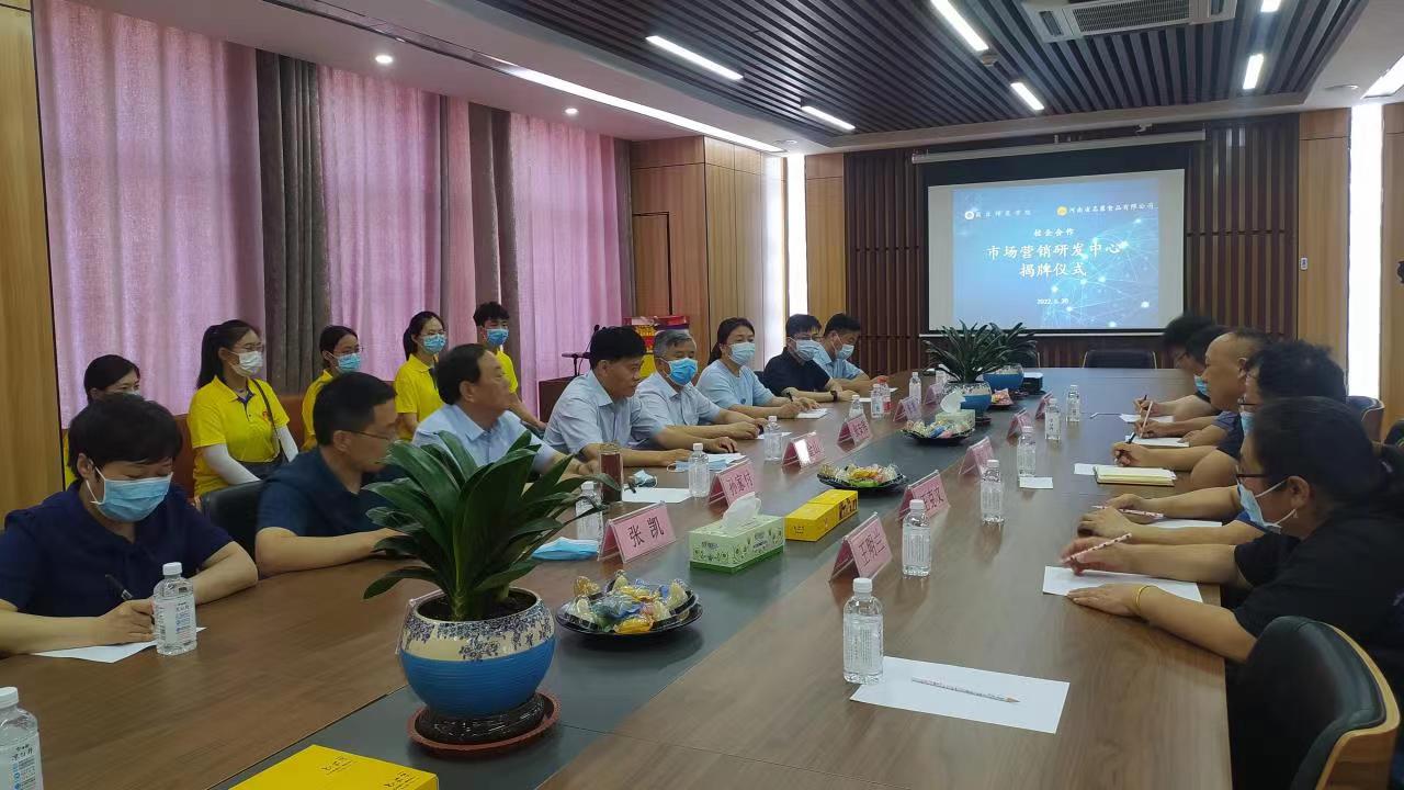 座谈会后,吴金山代表学校分别与河南万邦科技有限公司、河南省名菓食品有限公司负责人签署了共建研发中心协议书,共同为“市场运营研发中心”和“营销研发中心”揭牌。