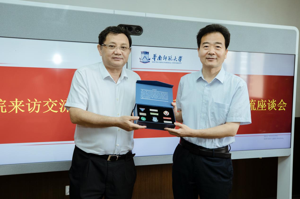 会上,两校互赠礼物。会后,陈向炜一行又参观了华南师范大学教师教育学部的全国教师教育质量监测平台、人工智能+教师能力测评系统、华南师范大学师范生免试认定测评系统等。