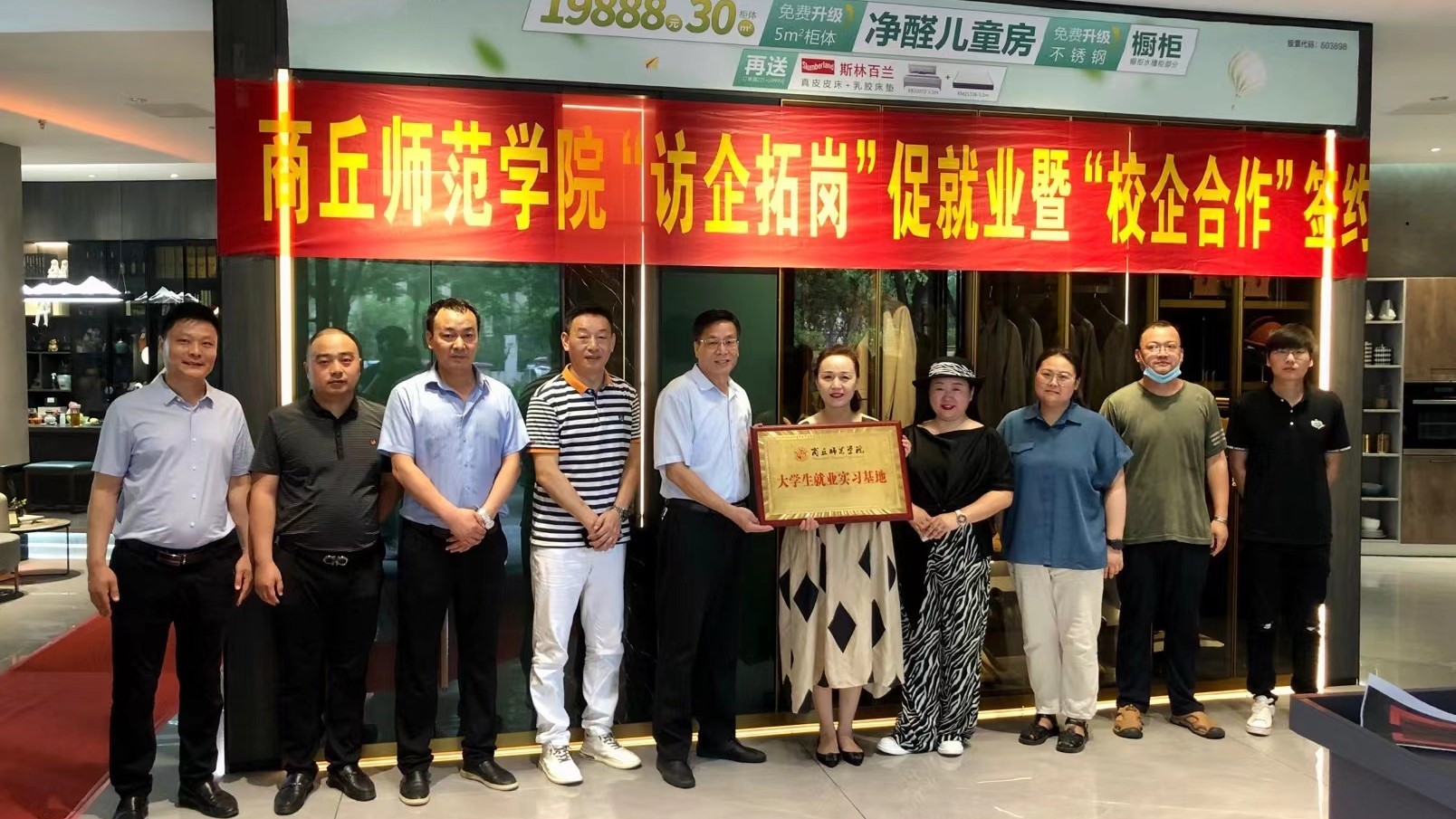 为深入贯彻落实党中央、国务院“稳就业”“保就业”决策部署,深化校企直通对接,全力促进毕业生更加充分、更高质量就业,6月23日上午,校纪委书记、监察专员李永春到商丘市键铭装饰有限公司、商丘市同济装饰工程有限公司、商丘市好莱客大家居、商丘市铭洲建筑装饰工程有限公司、商丘市易盛装饰设计有限公司等5家企业开展“访企拓岗”暨就业实习基地签约活动。各公司董事长和艺术设计学院党政领导班子成员参加活动。