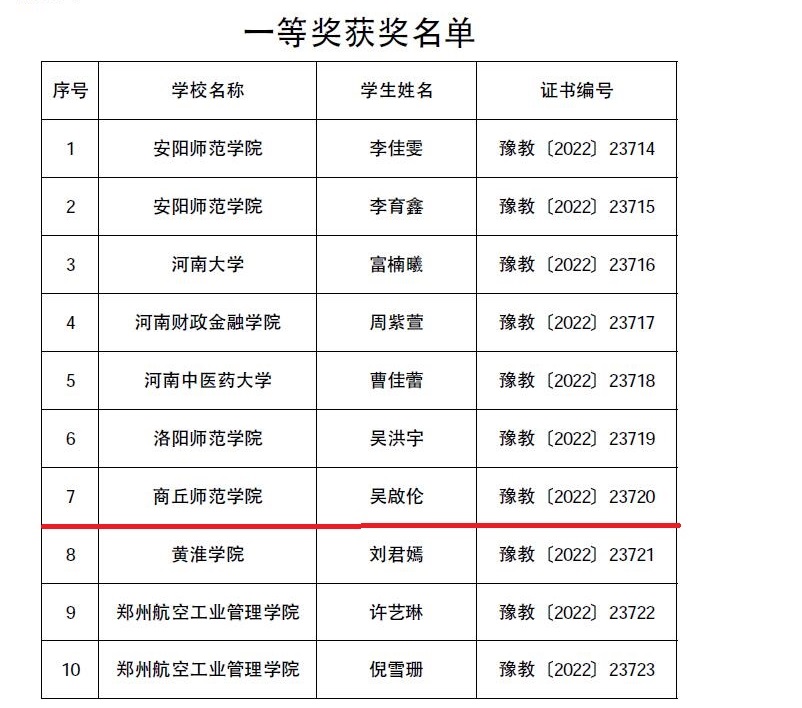 7月26日,河南省教育厅发布了《河南省教育厅关于公布“讯飞杯”河南省本科高校大学生英语口语大赛结果的通知》,LETOU官网学生吴啟伦荣获一等奖,王妍、颉展硕、王玉坦、苌欣琪荣获优胜奖,LETOU官网外语学院王晓燕老师荣获最佳指导教师奖。