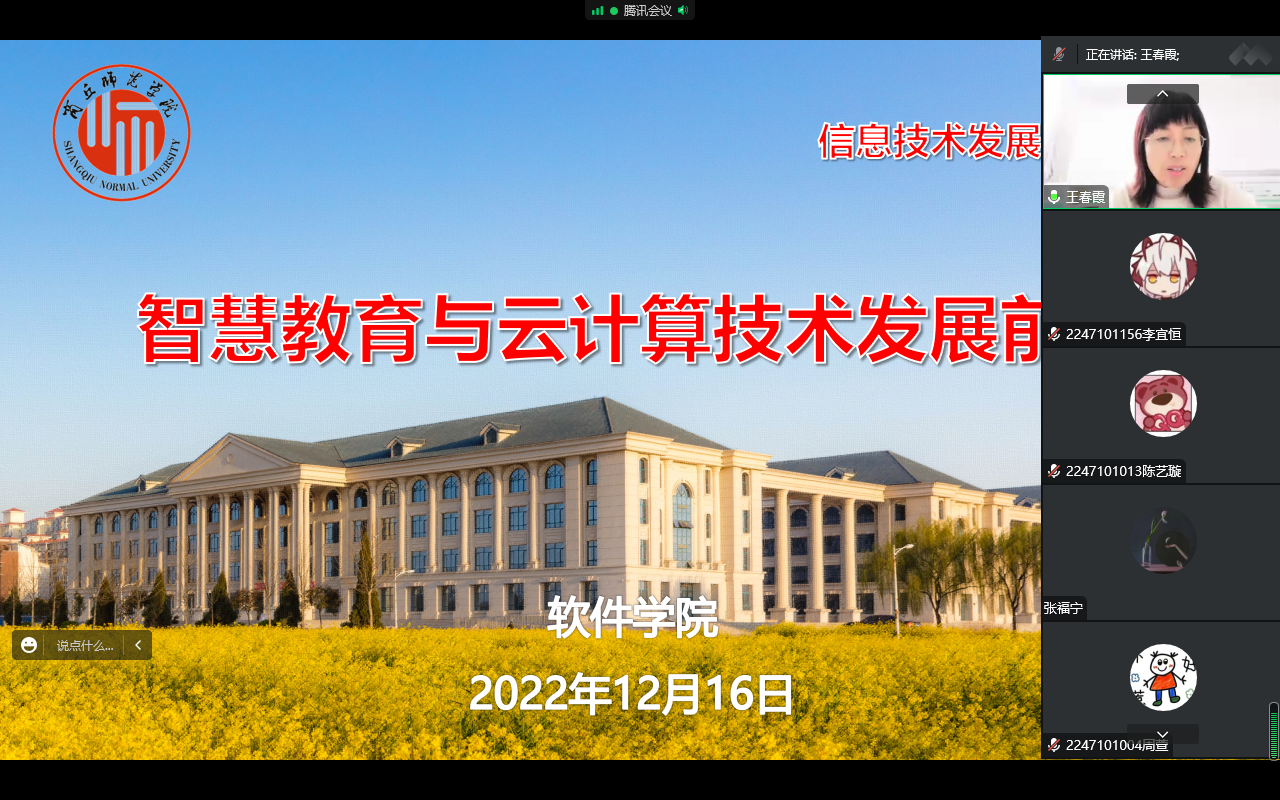 12月16日至17日,软件学院特邀河南云和数据信息技术有限公司副总经理陈涛为我院师生作信息技术发展前沿专题讲座。讲座由院长王春霞主持,学院全体师生参加了此次活动。