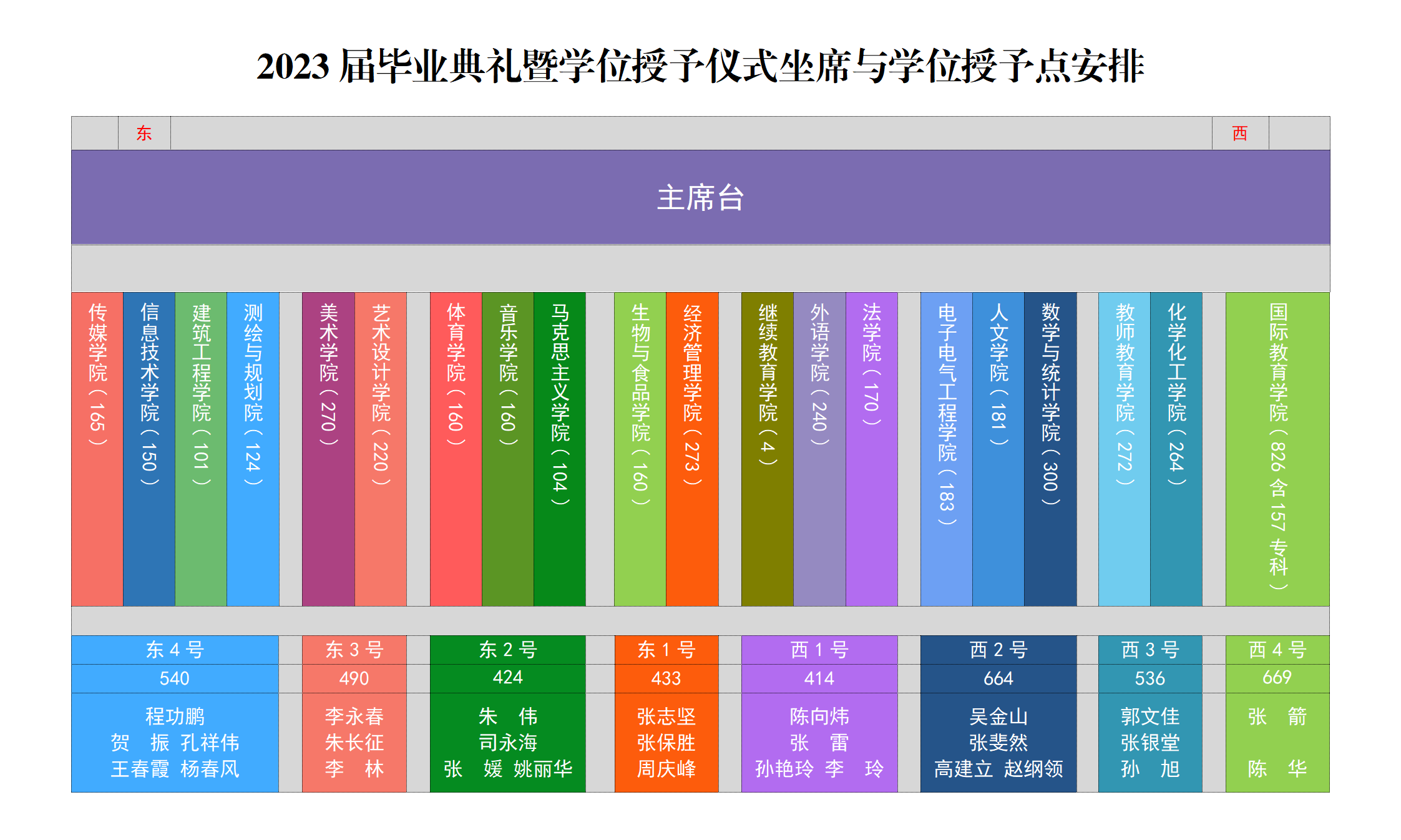 附件:毕业典礼暨学位授予仪式坐席与学位授予点安排表